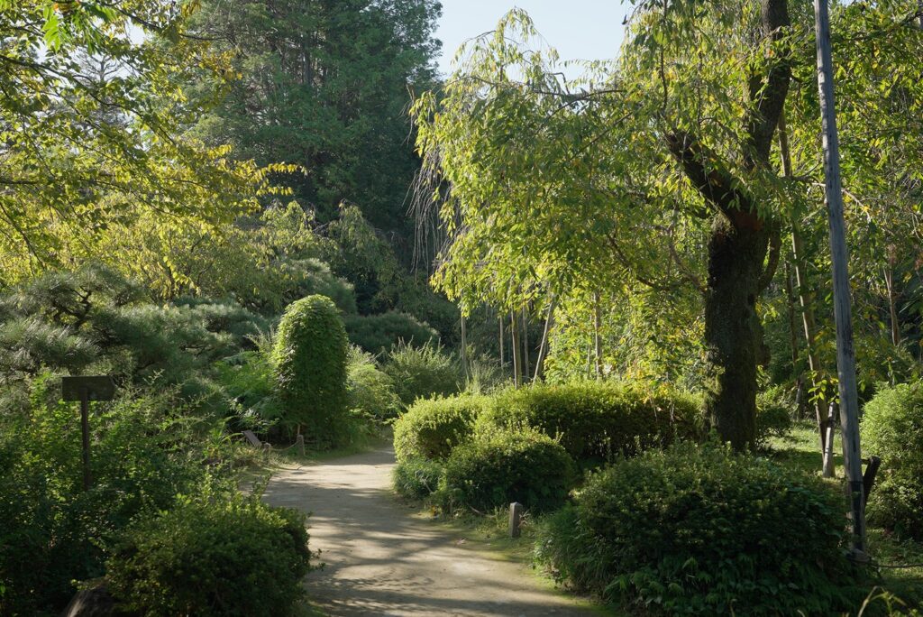 また、昭和五56年(1981)には往時の代表的文学書(竹取物語・伊勢物語・古今和歌集・枕草子・源氏物語)に登場する草木、約180種類を植栽して、王朝文化をしのばせる庭「平安の苑」としています。