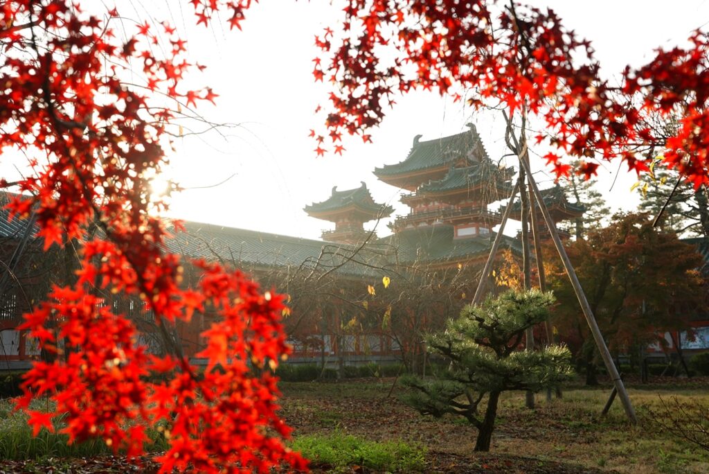 この神苑は、明治28年平安神宮創建以来八重紅枝垂桜の名所として親しまれています。