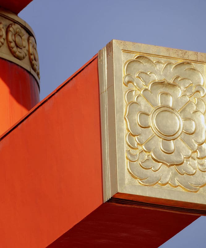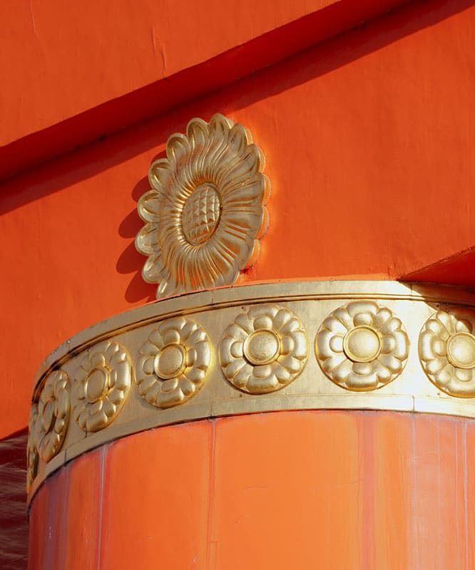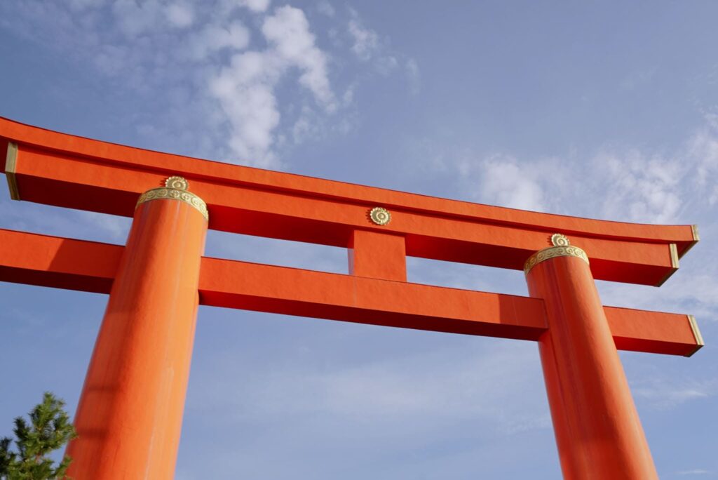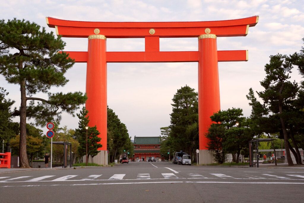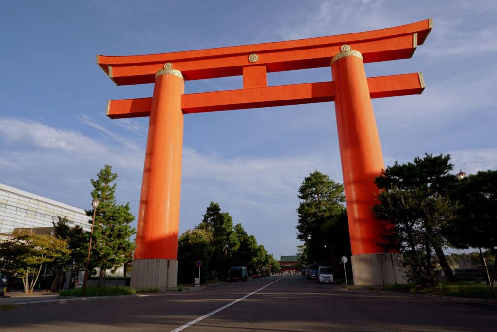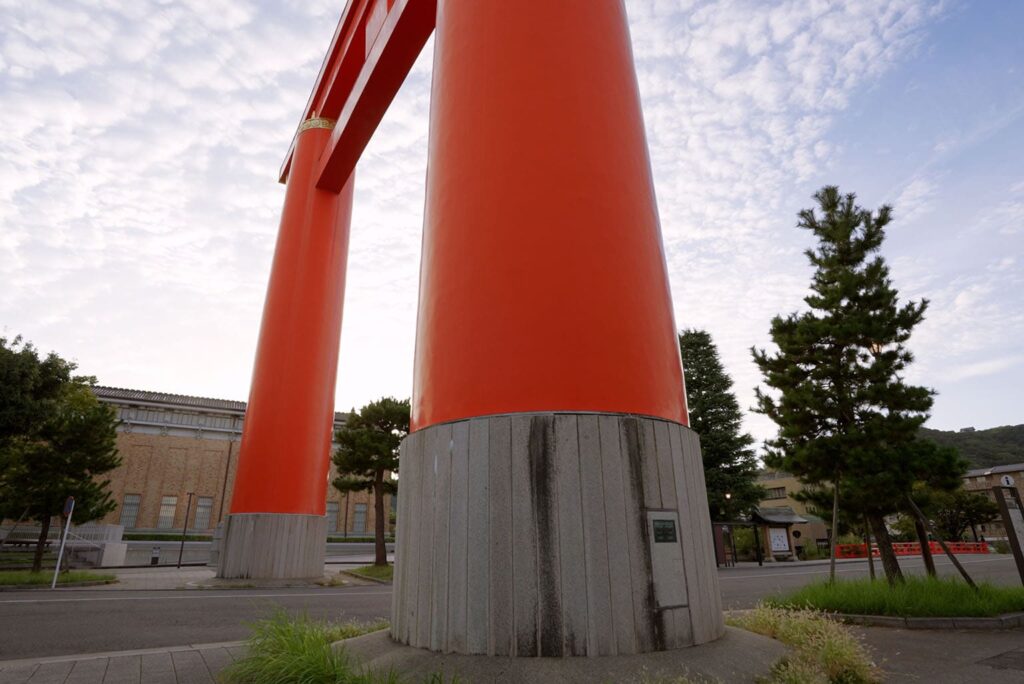 Elle suit le style d’un porte torii moyjin traditionnel, mais a été édifiée à l’aide de techniques modernes, telles qu’une structure en acier et du béton armé. Caractérisé par ses imposants piliers, cette porte représente un repère emblématique dans le quartier d’Okazaki à Kyoto et une réalisation architecturale inestimable illustrant la fusion de techniques traditionnelles et modernes.
