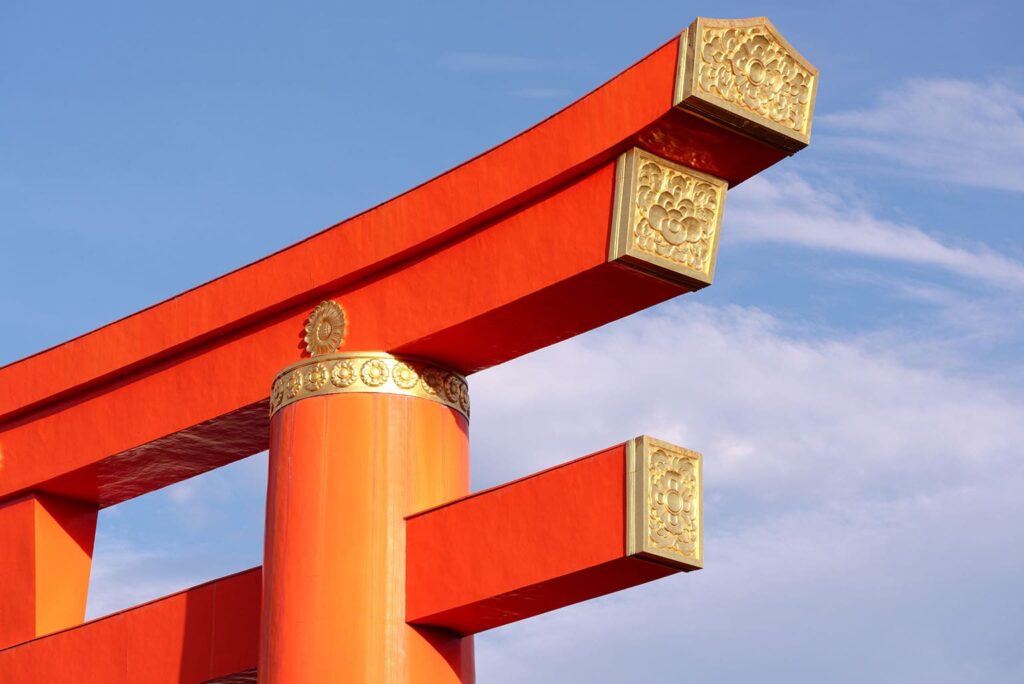 La grande porte torii a été construite en 1928 pour commémorer l’ascension de l’empereur Hirohito (1901-1989) au Trône du chrysanthème. Cette impressionnante porte mesure 24 mètres de haut et 18 mètres de large.