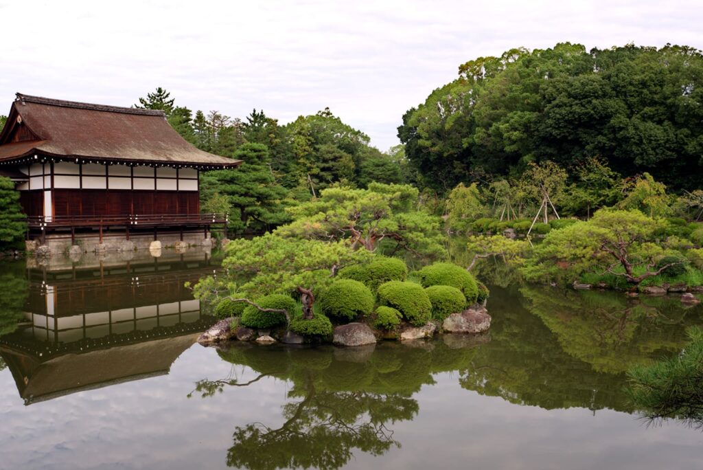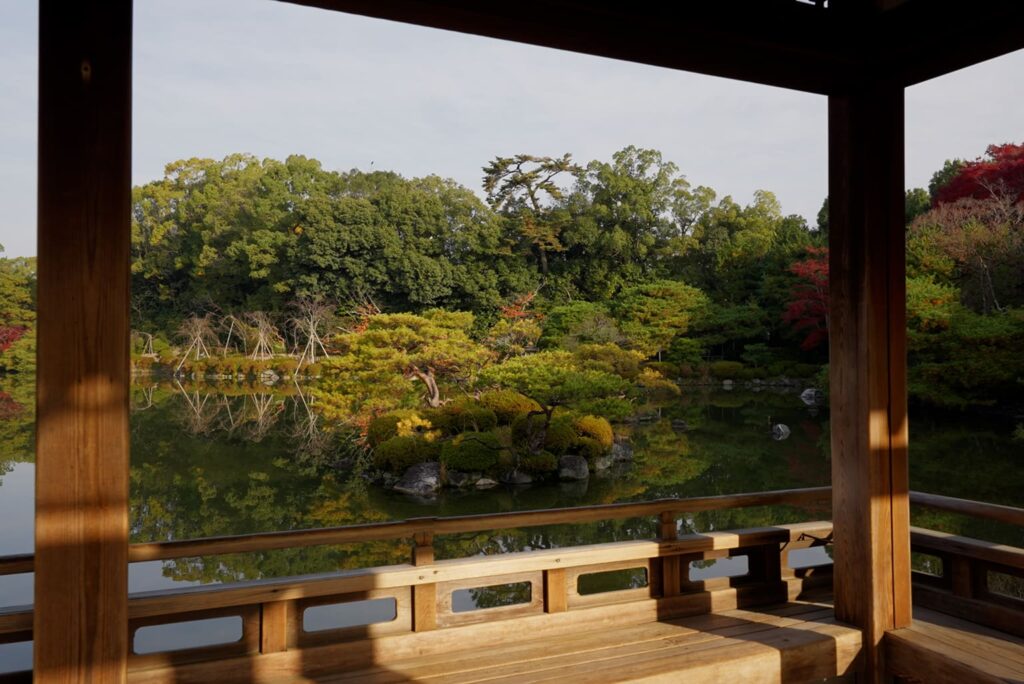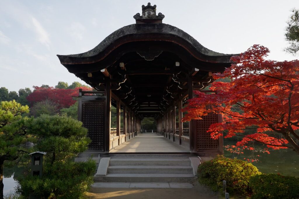 Le Jardin Est, ou Higashi Shin’en, est le troisième des jardins du sanctuaire Heian Jingu conçus par Ogawa Jihei VII, maître jardinier de l’ère Meiji (1868-1912), connu pour son utilisation habile des rochers et de l’eau. C’est le plus grand des quatre jardins et il comprend d’élégantes structures en bois, telles que le Taiheikaku, bâti à l’origine sur le terrain du palais impérial de Kyoto (Kyoto Gosho).
